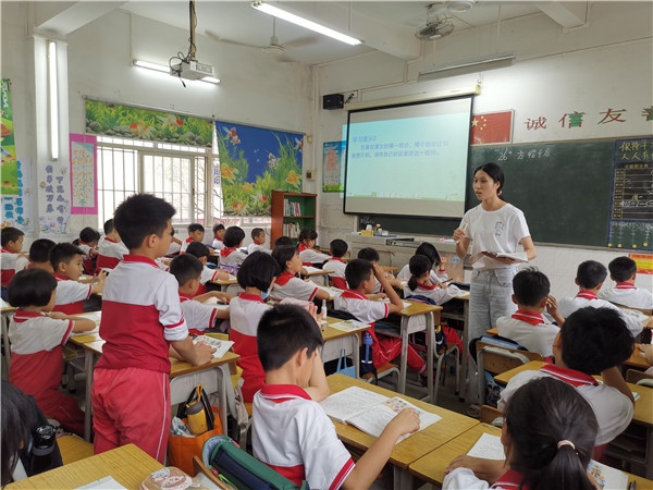 語(yǔ)文課上,許永強(qiáng)老師帶領(lǐng)二(1)班的孩子們走進(jìn)語(yǔ)文《蜘蛛開(kāi)店》這一課。許老師教學(xué)經(jīng)驗(yàn)豐富,語(yǔ)言語(yǔ)調(diào)富有親和力,學(xué)生的積極性和熱情參與度都很高,整節(jié)課下來(lái),語(yǔ)文味、趣味性融合一體,盡顯課堂的魅力。吳鎮(zhèn)華老師帶領(lǐng)四(1)班的同學(xué)們走進(jìn)了《黃繼光》這篇文章,她善于組織課堂的教學(xué)語(yǔ)言,設(shè)計(jì)恰到好處的課堂情境,引導(dǎo)學(xué)生抓住人物的語(yǔ)言、動(dòng)作等描寫,帶領(lǐng)學(xué)生深入學(xué)習(xí)和了解了黃繼光這一個(gè)英雄人物的故事和精神品質(zhì)。何敏焮老師執(zhí)教《方帽子店》一課時(shí),善于以問(wèn)題引導(dǎo)學(xué)生進(jìn)行自主學(xué)習(xí)課文的內(nèi)容,并以表格的形式讓學(xué)生進(jìn)行故事的復(fù)述,通過(guò)方帽子新舊的對(duì)比,讓學(xué)生從中明白要與時(shí)俱進(jìn)、勇于創(chuàng)新的道理。