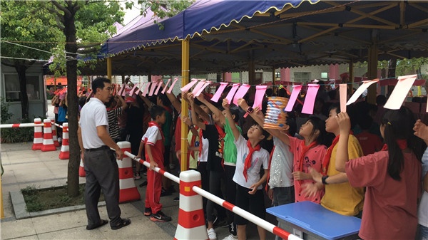 下午,校園內彩旗飄揚,一片歡樂喜慶的氣氛。校道兩邊也掛上了五顏六色的燈籠,燈籠上面的圖案生動形象,有嫦娥奔月、玉兔守廣寒宮等,琳瑯滿目。一個個燈謎掛滿校道邊上,光彩奪目,在這樣濃厚的佳節氛圍下,全體師生集中在校園里,目不轉睛地注視著燈謎,心中有謎底的同學滿心歡喜地找班主任揭謎底,笑容滿面地享受猜中的喜悅,領取獎品后繼續挑戰下一個燈謎……同學們玩得不亦樂乎,把活動引向高潮,大家靈敏而有趣的回答讓笑聲此起彼伏,同學們在玩中學,在學中玩,樂于其中。