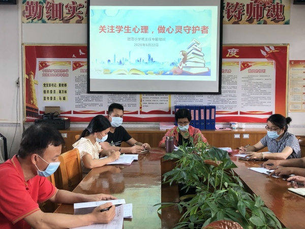 接著,德育處袁帥主任為全體教師進行了一次主題為“關注學生心理,做心理守護者”的心理健康知識培訓。強調教師們要以學生心理適應與調節為主,要關注學生心理健康,多與學生和善地交流,做好學生的心理疏導,排解他們心中的不良情緒。確保學生平穩、平安、順利過渡。