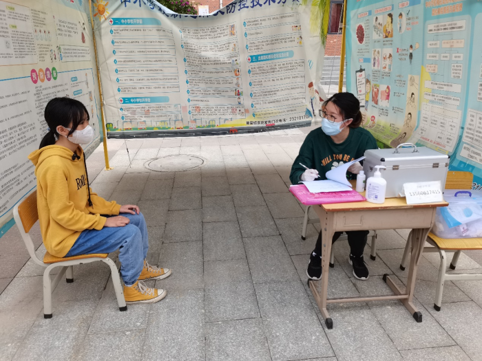 老師在教室將發(fā)熱學生帶到醫(yī)學觀察室時,通知學校疫情報告員做好接診。先讓學生坐在指定位置并把水銀體溫針交給學生進行測溫。在學生測量體溫時,疫情報告員查詢本校重點關注人員信息,同時詢問學生基本情況,立刻向學校領導匯報情況,并由上課老師通知班主任聯(lián)系該生家長,由班主任通知家長告知病情,并到學校接孩子到黃圃鎮(zhèn)人民醫(yī)院發(fā)熱門診處就醫(yī)。如有確認重點疫區(qū)或境外人員接觸史情況,除了通知家長外,還需要上報上級部門,等待核酸檢測結果。