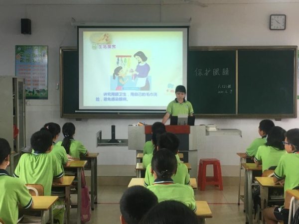 班隊活動課上,班主任們對保護(hù)眼睛的基本知識,如坐姿、看書、眼保健操等進(jìn)行了示范指導(dǎo),教育同學(xué)們平時要保持良好的讀、寫姿勢,少玩手機(jī)、電腦、游戲,保證充足的睡眠、合理飲食和適量的鍛煉,并糾正眼保健操的正確按壓穴位,保護(hù)視力。同時,通過形象生動的舉例說明使學(xué)生掌握科學(xué)的用眼知識,培養(yǎng)學(xué)生良好的用眼習(xí)慣。為了進(jìn)一步增強學(xué)生們的愛眼護(hù)眼的意識,科學(xué)防控近視,規(guī)范矯正近視。班主任還通過播放預(yù)防近視的視頻,使學(xué)生了解近視的成因、近視的危害以及預(yù)防近視的方法等,最后,同學(xué)們也互相交流了此活動的感受。