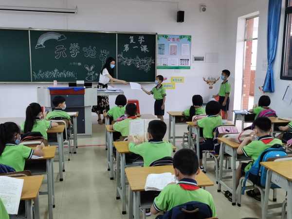 班主任和課任老師早早等在班級門口迎接學(xué)生,體溫正常的同學(xué)們進入班級指定位置,按照單人單桌的要求就坐,嚴格遵守“不聚集不扎堆”的要求。班主任及時對學(xué)生進行晨檢、收集復(fù)學(xué)承諾書等工作。學(xué)生們見到久違的同學(xué)們,見到敬愛的老師們,再次在熟悉的課堂暢游知識的海洋,臉上都洋溢著微笑。班級里再次充滿了同學(xué)們朗朗的讀書聲和歡笑聲。