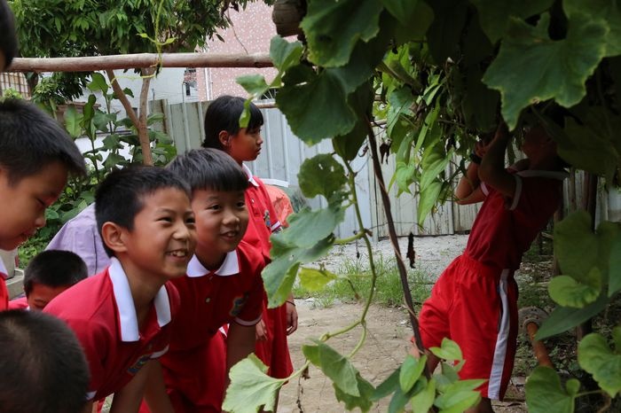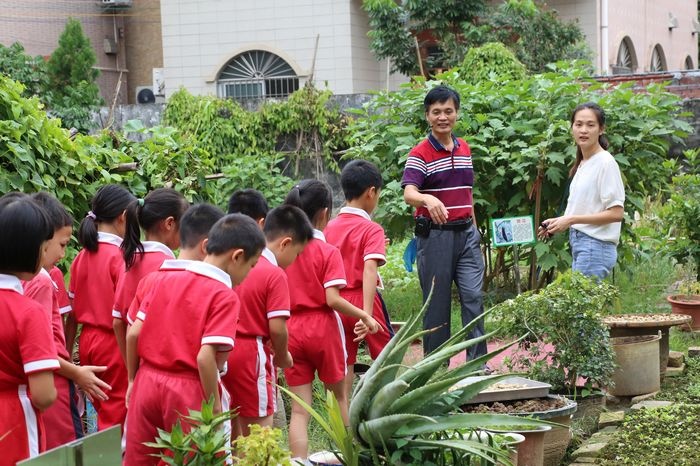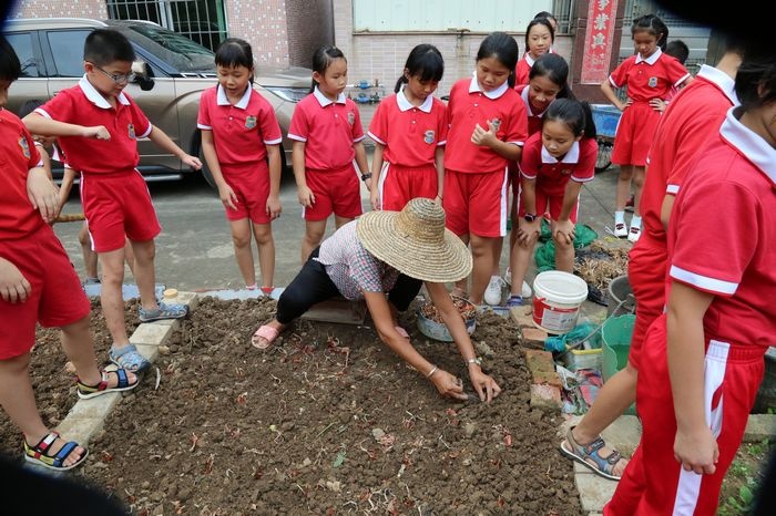 本次揭牌儀式的嘉賓為黃圃鎮(zhèn)教育和體育服務中心副主任袁港喜先生、農(nóng)場主即學生家長:羅洛怡家長、郭靖然家長、新地中心小學校長吳國有先生、科學教師陳漸成和陳藹齡老師以及50名學生代表。首先,由袁港喜先生、吳國有校長、農(nóng)場主、陳漸成老師進行簡單而隆重的揭牌儀式。隨后,鄧蛟龍主任針對新地中心小學勞動教育教學計劃進行介紹,并提出勞動教育將進一步在新地中心小學得到落實,專設勞動教育必修課、開展一系列勞動主題教育活動等。緊接著由陳漸成老師帶領學生代表參觀勞動實踐基地,并進行講解。在陳漸成老師的帶領下,學生嘗試如何拔草,知道如何制作以果蔬等廚余垃圾為原材料的肥料,了解粉葛的生長周期,對比韭菜與蔥的區(qū)別,體驗勞動實踐的樂趣。快樂的時光總是短暫的,學生們依依不舍的離開勞動基地,期待再一次的到來。