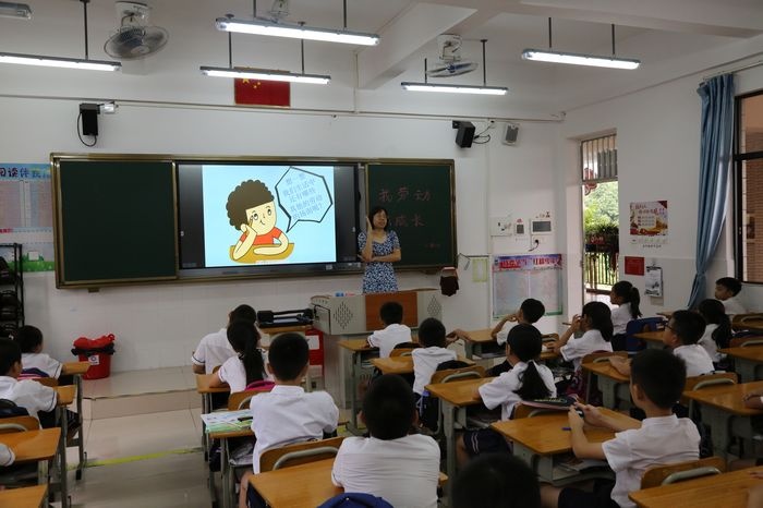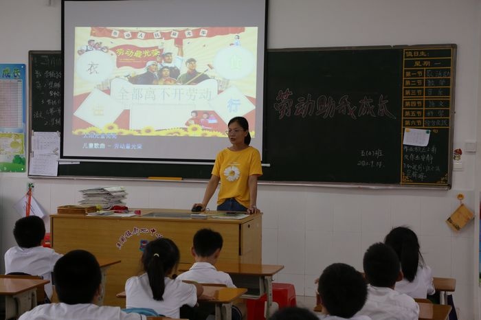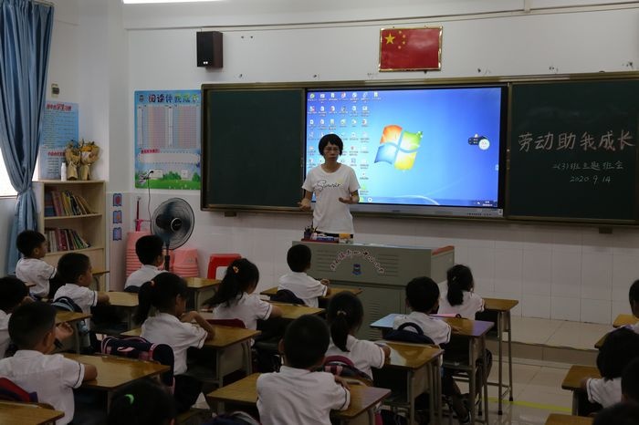 各班結(jié)合本班的實(shí)際情況,開展形式多樣的主題班會(huì)活動(dòng)。高年級(jí)的同學(xué)親自策劃主持,從體力勞動(dòng)到腦力勞動(dòng),再上升到家國情懷,圖文并茂的讓同學(xué)們深刻的理解到勞動(dòng)的重要性。中年級(jí)的同學(xué)通過唱?jiǎng)趧?dòng)歌曲,激發(fā)勞動(dòng)熱情。并在課堂上體驗(yàn)怎樣疊衣服、洗鞋子……不但讓學(xué)生掌握技能,也讓學(xué)生明白原來勞動(dòng)也有很多技巧。低年級(jí)的同學(xué)則通過欣賞學(xué)生勞動(dòng)的圖片和視頻,讓他們知道,年紀(jì)小也可以做很多力所能及的家務(wù)勞動(dòng),同時(shí)也感受到勞動(dòng)的喜悅。最后各班主任還總結(jié)了上兩周學(xué)生開展活動(dòng)的情況,表揚(yáng)了優(yōu)秀學(xué)生。
