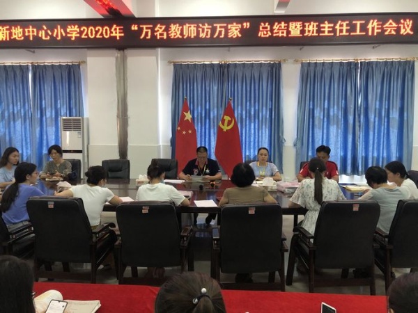 2020年7月3日上午,新地中心小學召開了“新地中心小學2020學年度第二學期“萬名教師訪萬家”總結暨班主任工作會議”,吳國有校長、杜晗婷主任、何建輝主任、大隊輔導員杜秋紅老師以及全體班主任參加了此次會議。