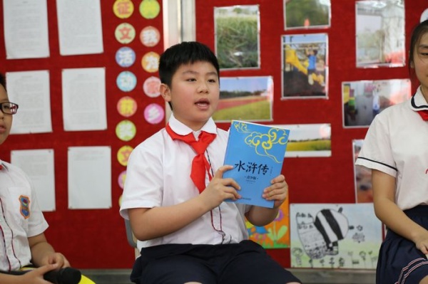 學校小主持人鄭希龍是個“讀萬卷書,行萬里路”的典范。他最喜歡讀武俠著作,于是他今天帶來的正是《水滸傳》,并且他還把眾所皆知的《武松打虎》片段以講故事的方式繪聲繪色地展現了出來。頓時,技驚四座。