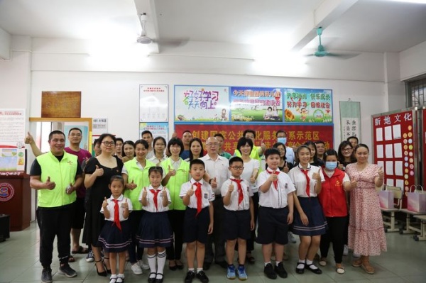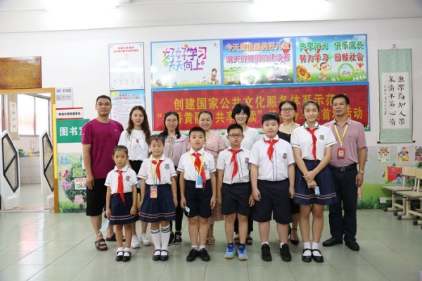 2020年是非常特殊的一年,全世界都在抗擊新冠肺炎,大家居家學習、工作,以另一種方式在不斷提升自己。在4月23日世界讀書日來臨之際,新地中心小學組織全校學生開展了親子閱讀活動,取得了相當好的效果。6月5日下午,黃圃鎮新地中心小學在何京華副校長、杜晗婷主任,以及語文科組長馬奧婷等老師的帶領下,王嘉蔚等六名“小書蟲”來到了新地村綜合性文化服務中心參加鎮“書香黃圃·共享閱讀”系列活動暨“2019年中山全民閱讀活動——書香社區(村)”頒匾儀式。