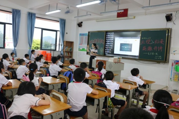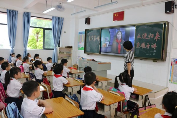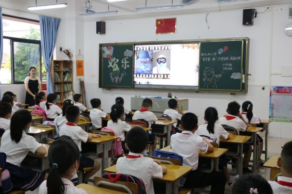 接著,一二三年級各班班主任組織同學們進行“天使歸來,英雄開講”復學第一課主題班會活動,讓同學們了解援鄂醫護人員們的先進事跡,汲取榜樣的力量。各班同學觀看“天使歸來,英雄開講”視頻,視頻中中山支援湖北第三批醫療隊隊長陳智偉和中山支援湖北第一批醫療隊隊員魏翠云講述中山醫療隊馳援湖北的經歷與感受。從兩位醫護人員聲情并茂的講述中同學們了解到,在抗疫過程中醫護人員化身鋼鐵戰士勇往直前,感悟到醫護人員的偉大,更了解到全國人民萬眾一心抗擊疫情的民族凝聚力。