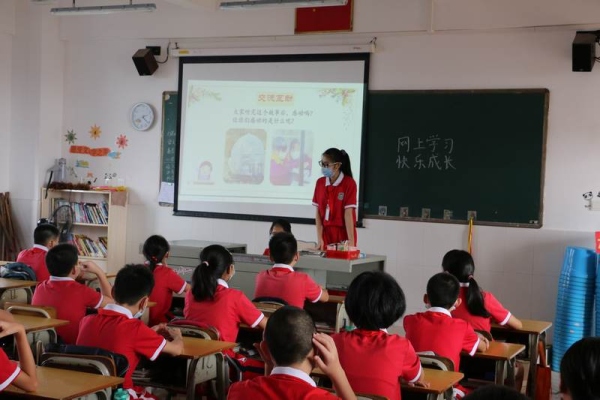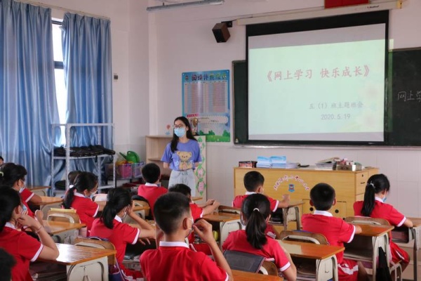 在班會課上,同學們先是回顧了兩個多月以來網(wǎng)上學習的方式,同學們分享了自己的一些學習方法,有的同學在父母的督促下進行學習,有的同學是獨自完成線上學習任務(wù)。接著,同學們分享了自己在網(wǎng)上學習過程中遇到的困難,有的同學是和兄弟姐妹共用一臺網(wǎng)絡(luò)學習終端,在學習上有一定的限制;有的同學是父母復(fù)工了,家中沒有可以使用的學習終端,要等父母回來才可以進行網(wǎng)絡(luò)學習;有的同學認為,網(wǎng)上學習和課堂學習區(qū)別很大,缺少和老師、同學的互動;有的同學認為,網(wǎng)上學習要經(jīng)常對著電子產(chǎn)品,眼睛容易不舒服,要注意休息和做眼保健操……也有同學指出,線上學習有很多好處,學習視頻可重復(fù)進行觀看,可由自己安排適合自己的學習計劃等。