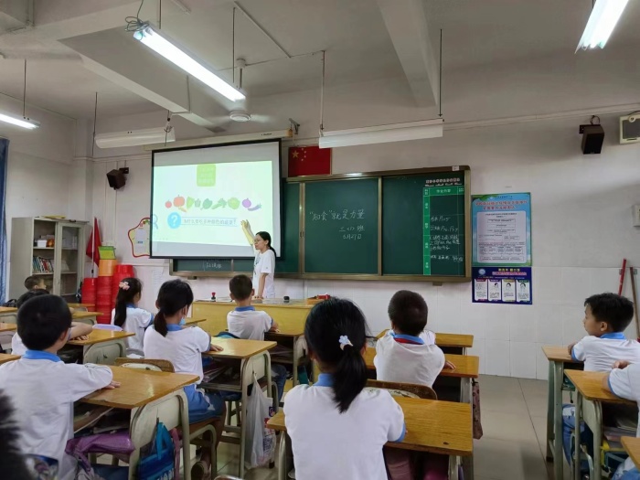 為貫徹落實《健康中國行動(2019—2030年)》和《國民營養計劃(2017—2030年)》,積極踐行《中國居民膳食指南(2022)》,聯合國兒童基金會駐華辦事處同中國營養學會,共同開發了知“食”就是力量營養科普知識,旨在提高兒童青少年營養健康意識和水平,傳播營養健康知識和理念,倡導健康的生活方式和管理方式,促進兒童青少年健康成長。2022年5月27日,黃圃鎮新沙小學開展“知‘食’就是力量”主題班會活動。