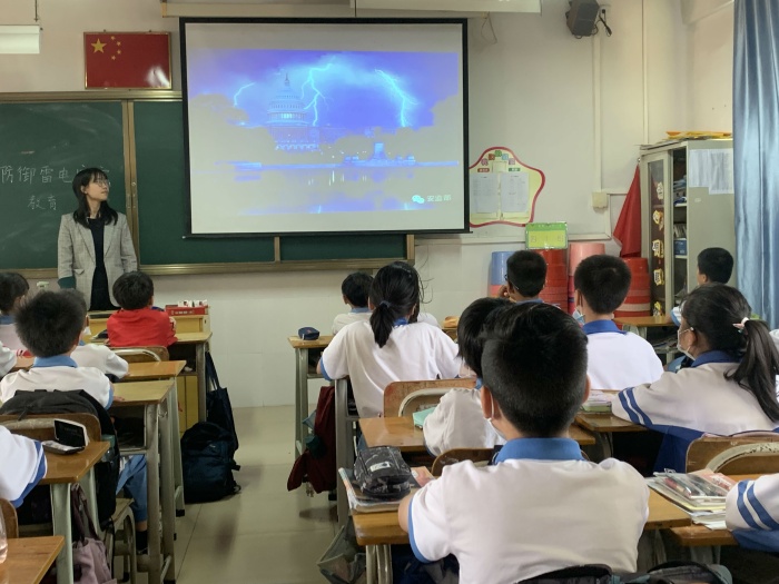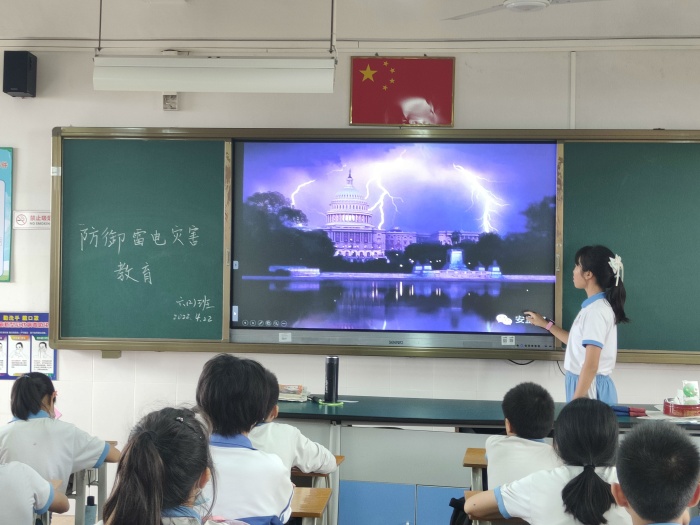 老師們針對雷電的產生、特點、預防措施等方面,向學生們深入淺出宣講有關防雷電安全知識以及安全注意事項,還把夏季常見安全事故,利用多媒體課件呈現給學生。并且根據一些因惡劣天氣、雷電等因素造成的慘劇對學生進行警醒教育,讓學生真正在思想上受到觸動。