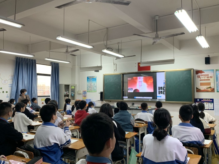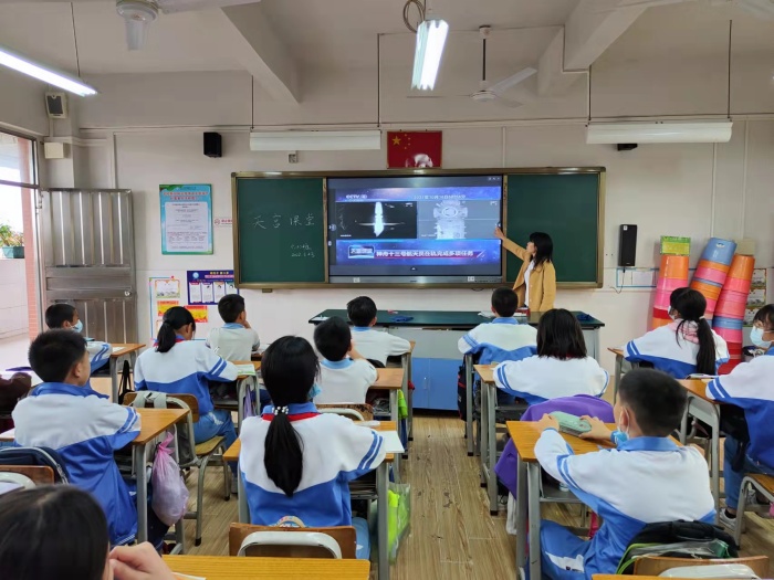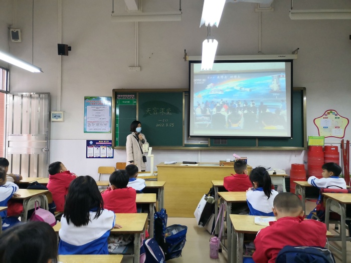 2022年3月23日下午,“天宮課堂”第二課在中國空間站開講,神舟十三號乘組航天員翟志剛、王亞平、葉光富相互配合進行授課,中央廣播電視總臺面向全球進行現(xiàn)場直播。為了激發(fā)學生不斷追求“科學夢”“航天夢”的熱情,為了培養(yǎng)學生探索科學知識的興趣,中山市黃圃鎮(zhèn)新沙小學特地組織全校學生在課室內(nèi)觀看了當天的直播課。