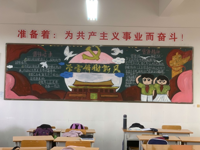 各班以“向雷鋒同志學習,做新時期好少年”為主題,積極尋找素材,收集資料。同學們相互協(xié)作,充分利用黑板報這塊宣傳陣地,介紹雷鋒事跡,摘抄雷鋒日記,精心設計版面。設計的板報獨特新穎、文字圖畫優(yōu)美生動、色彩搭配創(chuàng)新合理,生動地展現(xiàn)了各班風采。全校板報各具特色,精彩紛呈,為校園文化添了一道亮麗的風景線,最后經過少先隊大隊組織各班班主任對所有黑板報進行評比。