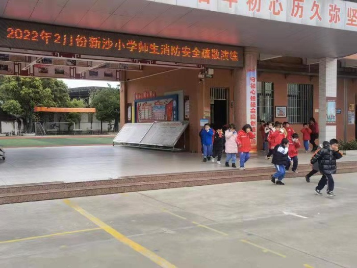 為了進(jìn)一步加強(qiáng)校園的消防安全工作,營造安全、穩(wěn)定、和諧的校園環(huán)境,增強(qiáng)師生在校園中的消防安全意識(shí),提高師生緊急逃生能力,2022年2月24日,黃圃鎮(zhèn)新沙小學(xué)舉行消防安全疏散演練活動(dòng)。