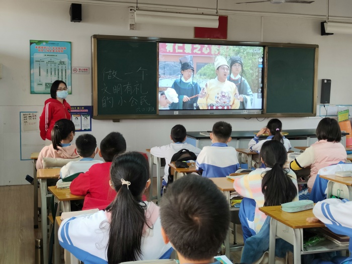 班會課上,班主任通過生動的案例和搶答題目的形式結合禮儀的具體內容,向同學們宣講儀表之禮、行走之禮、言談之禮、餐飲之禮、游覽之禮、觀賞之禮等,教育學生認真學習、理解、踐行,引導學生遵守公德,嚴于律己,禮貌待人,養成良好的文明行為習慣,傳遞文明正能量,提升文明素養,讓文明禮儀之花開滿校園。同學們紛紛表示要做文明學生,為班級為學校爭取榮譽,也為建設文明社會貢獻一份力量。