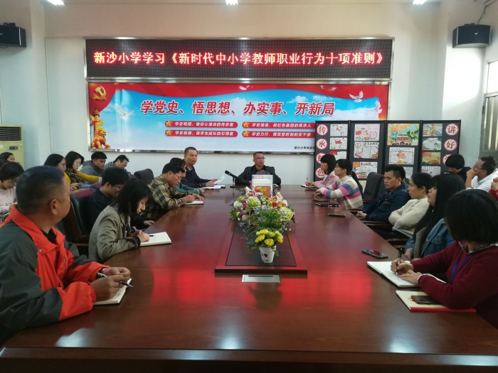 通過學習,新沙小學的教師們紛紛表示要在今后的教育教學工作中不斷規范自身言行,踐行師德,弘揚師風,加大自我約束力,嚴格按照《十項準則》要求開展教育教學工作。不忘初心、牢記使命,做以德立身、以德立學、以德施教、以德育德的教師楷模,維護教師職業形象。