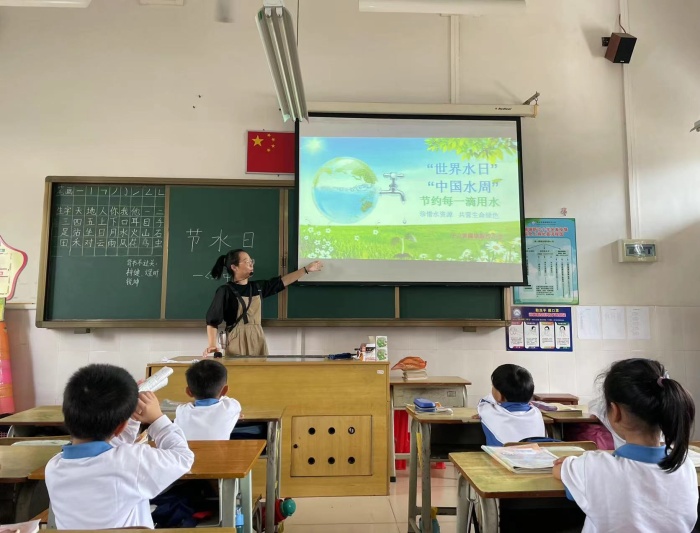 班會一開始,班主任用謎語來調動起學生們對水的興趣,還用PPT圖文并茂為孩子們講解。班主任強調“雖然世界水日是3月22日,但是對于我們來說,每一天都是節水日。”“我們為什么要節水?”“為什么會缺水?”緊接著一連串的反問句,讓每個學生都對這節主題班會課充滿了好奇。“因為我們用水太多。”“因為很多人浪費水。”……同學們給出了自己的答案。“大家知道嗎,我們國家是一個缺水的國家,而水孕育生命,一切生命都離不開水。所以我們通過這種形式,來號召人們節約用水,并合理利用水資源。”班主任的話讓學生們認識到了水的用途和重要性,而關于水的故事更是引得孩子們睜大了眼睛。班主任用生動的語言,向學生們講述了各種與水有關的故事,水的來源、水的種類以及我們的生活用水是如何產生的,還用互動的方式,提出各種問題,讓同學們回答,便于學生記住更多關于水的知識。