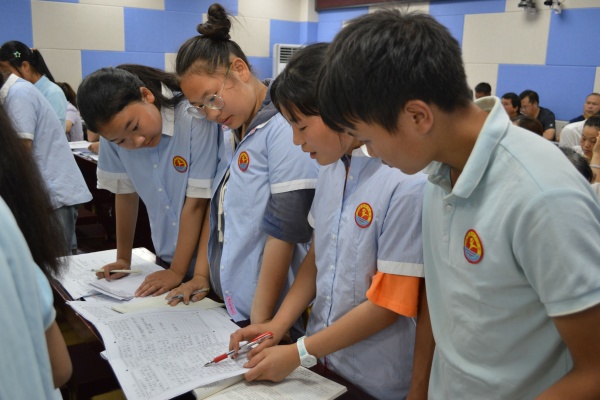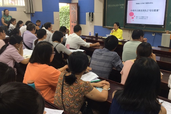 親臨現(xiàn)場感受名師風(fēng)采。2020年6月15日下午,黃圃鎮(zhèn)中學(xué)選派中學(xué)語文高級教師、黃圃鎮(zhèn)語文學(xué)科帶頭人、名班主任工作室主持人李麗老師赴幫扶的永善三中上縣級示范課《中考作文復(fù)習(xí)專題課之“修改潤色”》,永善縣全縣近50名骨干教師參加教研活動。課前,李老師為永善三中初三168班57個孩子批改了模擬考試作文,并順勢摸清了學(xué)情,精準地設(shè)計了寫作評講課。課中,她從“切合題意”角度出發(fā),從“言”和“意”兩個角度,對孩子作文的優(yōu)點不吝贊美,對孩子寫作的缺點耐心啟發(fā),并創(chuàng)編公式,教會孩子寫作思路和方法,并通過小組合作活動,現(xiàn)場展示學(xué)習(xí)所得。永善三中的同學(xué)們非常喜歡李老師的課,課堂氣氛熱烈,師生互動積極,教學(xué)效果非常好。課后評課環(huán)節(jié)聽課老師指出:對于農(nóng)村孩子來說,作文難教、難寫、難學(xué)是常態(tài),該作文復(fù)習(xí)課深入淺出,既有方法,也有范例,給他們的課改帶來一場及時雨。