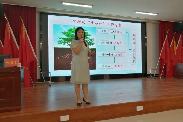 在家門口就能共享前沿教育理念。2020年6月17日早上,黃圃中學(xué)何彩霞校長到永善縣中山博愛學(xué)校舉行名校長論壇。中山博愛學(xué)校主要由中山市政府牽頭出資捐建。在博愛學(xué)校,何校長給全縣中小學(xué)的正副校長帶來了一場頭腦風(fēng)暴式的講座:《尋找學(xué)??茖W(xué)發(fā)展之路—-以一所薄弱初中成功轉(zhuǎn)型為例》,讓校長們沉浸其中。何校長是廣東省骨干校長,廣東省中小學(xué)教師信息技術(shù)應(yīng)用能力提升工程2.0培訓(xùn)專家,中山市責(zé)任督學(xué),中山市先進教育工作者。她以一所農(nóng)村中學(xué)——黃圃鎮(zhèn)中學(xué)為研究對象,拼搏9年,研究9年。鎮(zhèn)中從合并之初薄弱、煥散、滯后到如今優(yōu)質(zhì)、凝聚、先進,背后有著深刻的原因和寶貴的辦學(xué)經(jīng)驗。何校長真誠地和校長們分享鎮(zhèn)中的歷史、現(xiàn)狀和未來。講座從校長的“六種專業(yè)職責(zé)”開始,到建立學(xué)校的“生命樹”管理架構(gòu),明確提升學(xué)校核心競爭力的途徑,到思考“怎樣培養(yǎng)人”的核心問題,從建立起“潤澤生命”的文化體系、“潤澤課程”的教育體系,到邁出了“智慧課堂”的步子,講座中所涉及到的辦學(xué)效果都用實例、數(shù)據(jù)說話,讓人信服,尤其是在何校長分享行之有效“教研訓(xùn)三位一體”教師發(fā)展模式,讓與會者獲益良多、感慨頗深。在講座現(xiàn)場,何校長還與在座校長們現(xiàn)場互動,提問、思考、反饋、討論,學(xué)習(xí)氛圍熱烈。他山之石,必能攻玉。何校長的講座有大愛、大情懷、大格局,她帶來的鎮(zhèn)中經(jīng)驗,讓所有的研修人員如沐春風(fēng),醍醐灌頂。