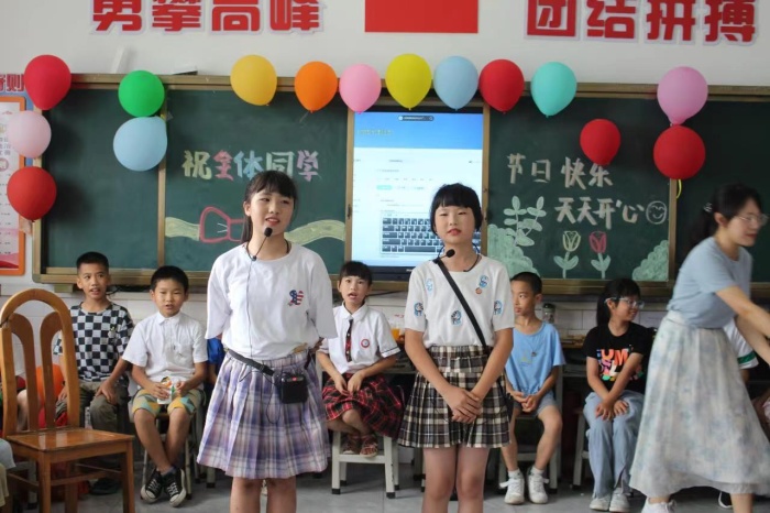 今年的活動主題為“展示自我,歡慶六一”,力求讓每一個孩子有表演的機會,都成為活動場上的主人、節日的主角。裝扮一新的教室里,充滿了歡慶的氣息,孩子們歡聚一堂,興致盎然。各班的文藝節目都由孩子們自編自演:唱歌、舞蹈、游戲、講故事……一系列的活動充分展現了他們多才多藝、個性張揚的一面。一個又一個精彩有趣的文娛節目將班級聯歡活動不斷推向高潮。老師們興致勃勃地走進各自班級,走近孩子,和孩子們一起聯歡,一起感受、回味童年的歡樂。教室成了歡樂的海洋,快樂與幸福溢滿了每位同學的臉。