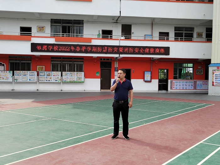 上午9時,隨著警報聲的響起,消防安全應急疏散演練正式開始。各班班主任老師迅速到達各班協助上課老師一起組織學生疏散,其他老師們也在第一時間趕到自己當時所在樓層拐角處配合疏散學生。各班學生在老師們的指揮下,彎著腰,貓著步,用手帕、毛巾等捂住口鼻,沿著學校指定樓梯口快速前進,有序撤離到學校操場的安全地帶,耗時2分多鐘。隨著各班班主任清點人數,并層層上報,全校1000余名師生全部安全疏散完畢。隨后,安全處黃字由主任對此次消防應急疏散演練活動進行了點評,表揚了在演練活動中做得好的班級,并強調一旦身邊發生突發事件,要沉著應對,做好及時報告和安全逃生工作,有效掌握在危險環境中迅速逃生、自救、互救的基本方法,切實提高抵御和應對緊急突發事件的能力。最后,雛鷹學校張華校長對本次活動進行了細致的總結,希望全體師生以這次演練為契機,繼續牢固樹立防火安全意識,不斷學習防火安全知識,要防患于未然,共建平安校園。