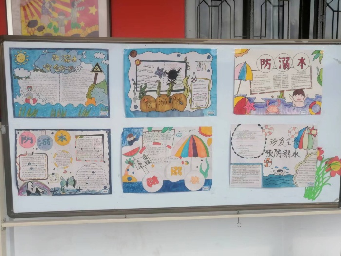 經過了學生們的準備,各班通過班級甄選,最后選出精美作品參加評比。一幅幅主題手抄報或濃墨重彩,或黑白相間,或板塊清晰,或字跡工整……同學們用畫筆描繪出心中的安全藍圖,一首首安全之歌告誡伙伴們不能擅自下河、塘、水庫、溝、渠等地方,避免發生溺水事件,生動形象地展示著他們的安全小天地。
