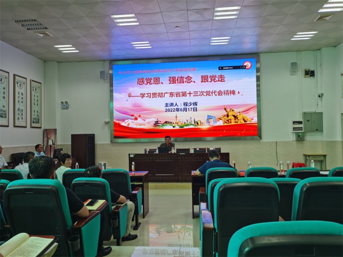 學校黨總支書記、校長程少輝圍繞省第十三次黨代會精神上專題黨課,從省第十三次黨代會的重要意義、李希書記報告的主要內容、結合學校實際狠抓落實等方面,全面系統、深入淺出地解讀省第十三次黨代會精神。他說,省第十三次黨代會是在廣東進入全面建設社會主義現代化國家新征程、豪情滿懷迎接黨的二十大勝利召開的重要時刻召開的一次十分重要的會議。