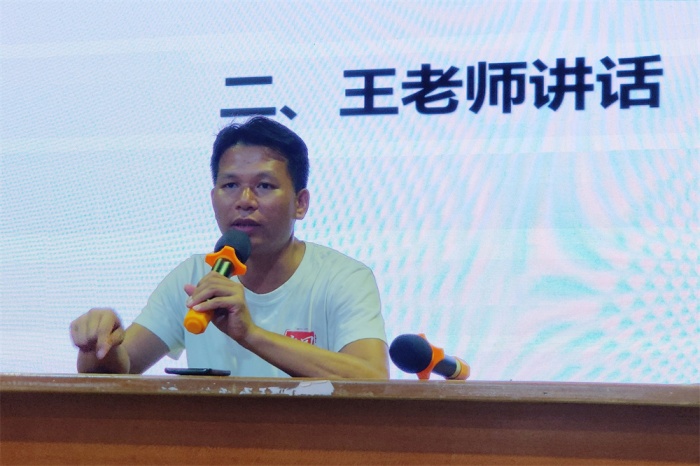 會議第二項,生活老師王光華向大家分享了文明宿舍創建的秘訣和方法,分享了自己在與同學們共同生活的點滴故事,回憶美好、詮釋擔當、傳遞力量,同時希望各位宿舍生以樣板宿舍為榜樣,向榜樣學習,向榜樣看齊。