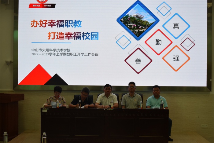為確保新學(xué)期各項(xiàng)工作安全、有序、高效進(jìn)行,2022年8月31日上午,中山市火炬科學(xué)技術(shù)學(xué)校在開(kāi)發(fā)區(qū)校區(qū)報(bào)告廳召開(kāi)以“辦好幸福職教,打造幸福校園”為主題的新學(xué)期教職工開(kāi)學(xué)工作會(huì)議。學(xué)校黨總支書記、校長(zhǎng)陳建國(guó)等校領(lǐng)導(dǎo)出席會(huì)議,全校教職工參加會(huì)議。會(huì)議由該校黨總支組織委員、副校長(zhǎng)陳紅芳主持。