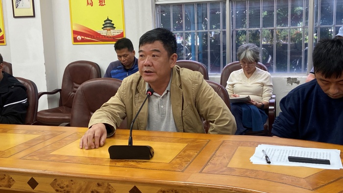 總務處蔡飛翔副主任就目前校園存在地安全隱患及校園疫情防控工作向全體教師做學期中期各項后勤總務工作小結和部署,強調校園在修在建地設施場地一律禁止使用,校園一切教學、德育活動務必以安全為前提來開展。