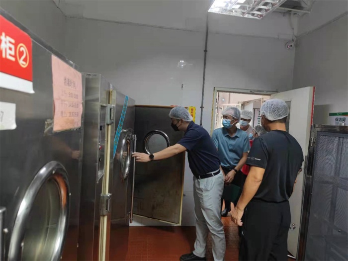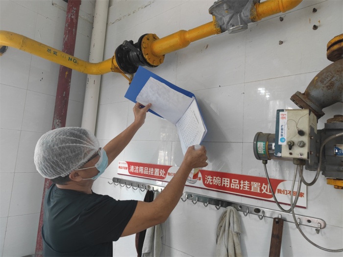 在檢查過程中,檢查組每到一處都認真查驗、察看,并聽取食堂負責人的詳細介紹。本次檢查重點包含人員疫情防控、食材靜置、食品安全管理、健康管理、索證索票、清洗消毒、加工制作、環境衛生、飲水管理、采購驗收、入庫出庫及燃氣安全等方面。檢查結果顯示,學校食堂疫情防控措施落實到位,環境衛生情況整體良好,餐飲具清洗消毒規范,食品進貨查驗索證索票、食品貯存、加工制作、留樣規范、燃氣安全等方面都能做到規范自查。