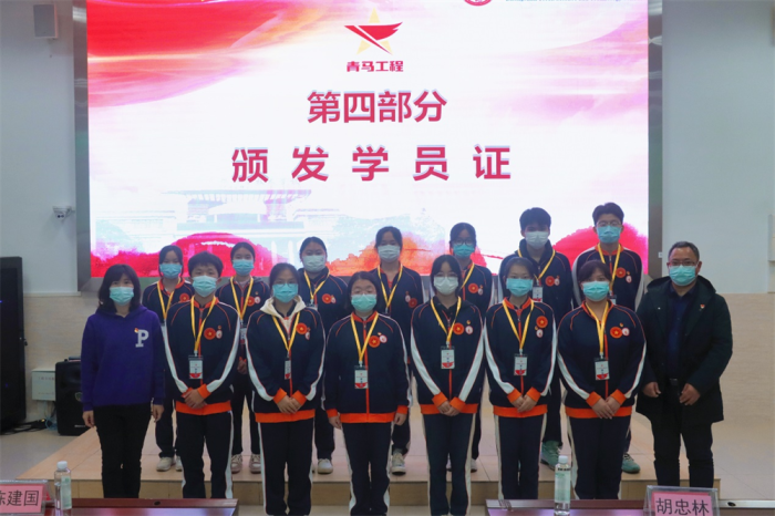 隨后,校黨總支書記、校長陳建國同志為“青馬工程”培訓班授旗。校黨總支委員、黨建辦主任胡忠林同志,德育處主任凌杏絲同志為青馬工程學員頒發學員證。副校長劉尚楠同志為青年講師團的七名老師們頒發聘書。