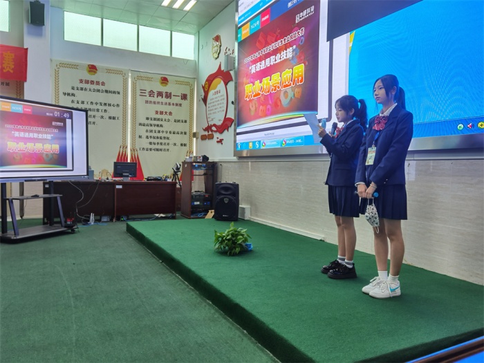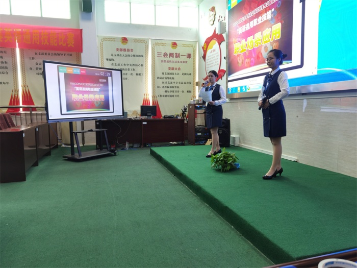 10點40分,進入比賽的第三個環節——“職場應用”。選手們在這個環節中依靠自己精湛的英語口語和鎮定自若的舞臺表現力贏得了觀眾和評委的陣陣掌聲。