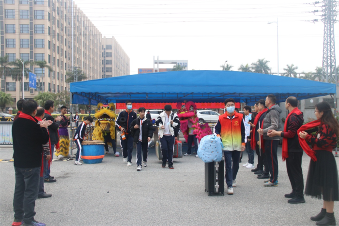 清晨,迎著和煦的春風,在歡快的鑼鼓聲中,中山市火炬科學技術學校醒獅隊、教師代表在校門口熱情地迎接著每一個學子,讓同學們體驗和感受民俗文化的同時,把健康、平安、喜樂帶到校園的每個角落,寓意新學期學子們將在喜慶、吉祥的環境中開開心心地學習、健健康康地成長。學校領導、教師代表、“小火炬”志愿者等,一早到校迎接同學們返校,來回奔波搬運行李,只為給同學們加注一份安心、增添一抹暖意。默默守護的身影,是對孩子最好的言傳身教。校長、教師代表將寄托著殷切希望的兔年賀卡親手發給每一個同學。一聲聲問候,一句句歡迎,讓剛邁入校園的學子們都沉浸在幸福、快樂的氛圍中。