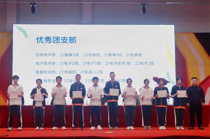 最后,學校領導分別為上學期榮獲“優秀團支部”、“先進班集體”的班級代表頒獎。相信新的學期,會有更多的班級在榜樣的引領下成長!