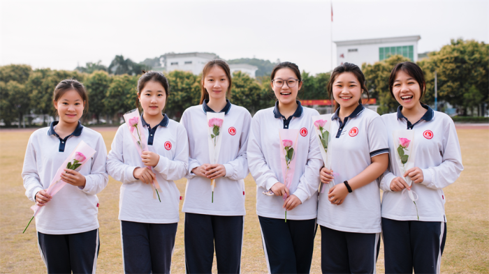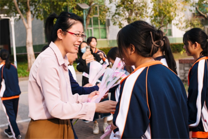 國旗下講話儀式結束后,學校領導、各學部部長和班主任老師們,紛紛熱情地為全校女教師、女學生送上鮮花以及節(jié)日的祝福,展現(xiàn)了學校濃厚的人文關懷及師生情懷。