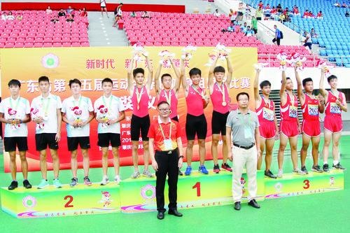 槍聲響起,中山、佛山兩隊明顯領先其他6支隊伍沖在前列。最后沖刺,兩隊幾乎同時沖線,最終成績顯示,中山隊的成績是3分17秒62,而佛山隊的成績是3分17秒36,兩支隊伍均打破了塵封17年的省紀錄,而佛山隊以0.26秒的微弱優勢奪得該項目冠軍,中山隊雖然遺憾地獲得亞軍,但也創造了參賽以來最好成績。