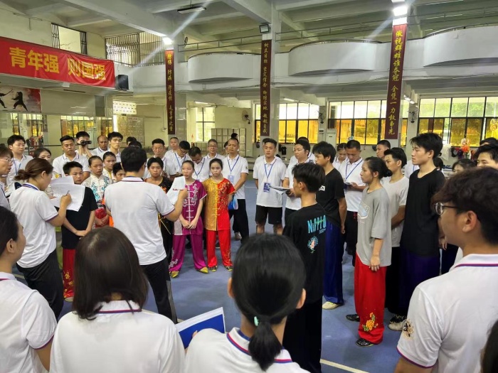 武術隊的隊員們個個精神抖擻,出招、跳躍、翻滾,每套動作行云流水,一招一式剛勁有力,令人賞心悅目。隊員們有時練一個動作都得重復十幾遍甚至幾十遍。運動員們在練習難度動作——單跳后空翻落地,膝蓋經常被砸腫,在這種情況下,隊員們仍然堅持訓練。為了難度的穩(wěn)定性,每一個運動員們都不厭其煩地練習,憑借著對武術的這份熱愛,教練和孩子們一起克服了重重的困難。