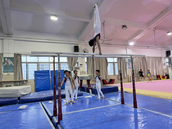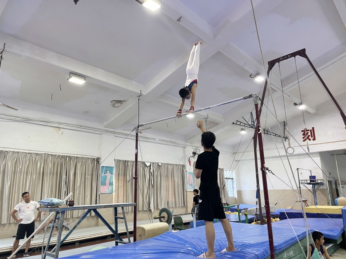 “抓穩、集中注意力,開始!”體操訓練場上,孩子們身著訓練服,分別在平衡木、高低杠、鞍馬上靈活地做著跳躍、翻轉、旋轉等各種肢體動作……每一名隊員都飽含激情,在教練員的指導保護下加緊訓練,為即將到來的第十六屆省運會積極備戰著。