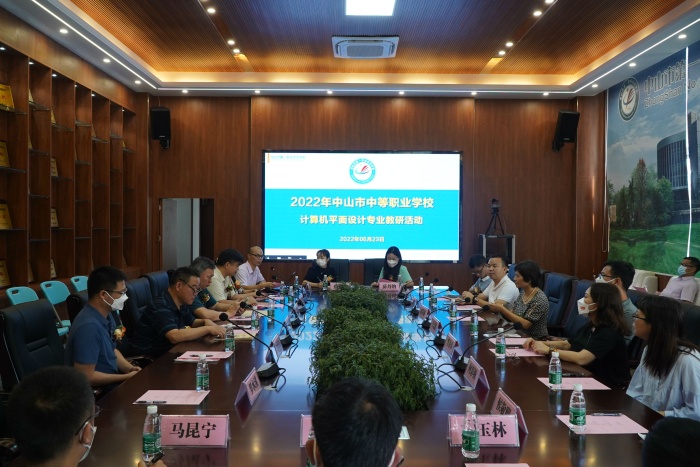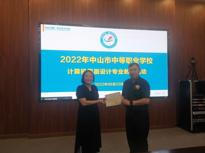 6月23日上午,由市教研室主辦的中山市中職學校計算機平面設計專業教學研討活動在中山一職舉行。本次活動包括一場畢業展、一節公開課、一場研討會,旨在展示中山一職2020級畢業生學習成果,交流碰撞,探討“教學做一體”相融合的教學與成果展示模式在中職學校計算機平面設計專業中的應用。教研員陳建國老師率領全市中職學校計算機平面設計專業骨干教師出席活動,中山一職副校長章利建,教務處主任林輝,教務處副主任何彩梅、侯敬熙,新光源技術部部長黃娟,中山市印藝快線數碼圖文有限公司經理李明杰,六盤水市水城區職業技術學校三位跟崗教師,及部分家長、學生參加了活動。
