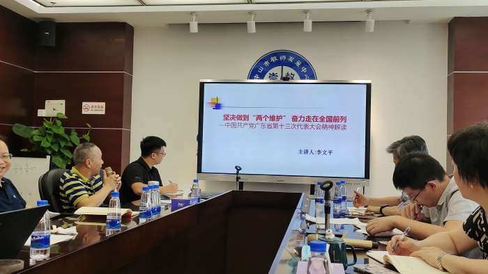 黨史研究專家李文平同志以“堅(jiān)決做到‘兩個(gè)維護(hù)’ 奮力走在全國(guó)前列”為主題,上了一堂學(xué)習(xí)中國(guó)共產(chǎn)黨廣東省第十三次代表大會(huì)精神的專題黨課。詳細(xì)解讀了十三次黨代會(huì)的重大意義、主要內(nèi)容、主要精神,并就深入學(xué)習(xí)貫徹黨代會(huì)精神,在全面建設(shè)社會(huì)主義現(xiàn)代化國(guó)家新征程中建功立業(yè)進(jìn)行了全面剖析。李老師深入淺出、以點(diǎn)帶面,勾勒出省第十三次黨代會(huì)精神的內(nèi)容框架,參會(huì)黨員無不精神振奮、獲益匪淺。按照主題黨會(huì)的要求,隨后開展了對(duì)十三次黨代會(huì)精神學(xué)習(xí)體會(huì)的分享交流。鞏輝、羅強(qiáng)、張梅青、張群星、崔裕靜、蔣太路等同志依次交流分享,將學(xué)習(xí)活動(dòng)推向高潮。