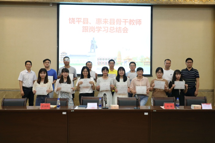 根據省教育廳“三區”人才支持計劃教師專項計劃部署,我市積極承接“三區”教師跟崗學習工作。本學期我市共接收30名來自潮州市饒平縣和揭陽市惠來縣的骨干教師跟崗學習,為進一步總結跟崗學習經驗,持續提升跟崗學習工作成效,6月24日下午,我局召開“饒平縣、惠來縣骨干教師中山跟崗學習總結會”。市教育工委委員、市教育和體育局黨組成員、副局長王志紅同志,市教研室周曙副主任,有關鎮街和跟崗學校代表,全體跟崗教師以及相關工作人員參會。