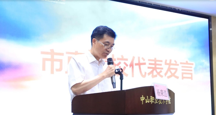 新教師的發展成長也離不開鎮街教育行政部門和新教師任職學校的精心培養。沙溪鎮教育和體育事務中心寧云志主任、中山市第一中學楊榮浩副校長分別作為鎮街教辦代表、市直屬校代表介紹了新教師專業培養與成長的經驗。