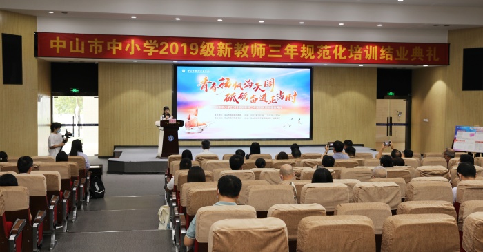 2022年7月3日下午,中山市中小學2019級新教師三年規范化培訓結業典禮在中山職業技術學院峻德樓一樓遂賢廳隆重舉行。在疫情防控常態化的要求下,本次結業典禮采用了線上與線下相結合的方式進行。市教育和體育局副局長王志紅,市教體局師資管理科科長呂碧華,市教師發展中心副主任(主持全面工作)洪世林,市教師發展中心副主任劉歡桐等領導出席了本次典禮。活動由中山市教師發展中心教師培訓部副部長陳雁玲博士主持。