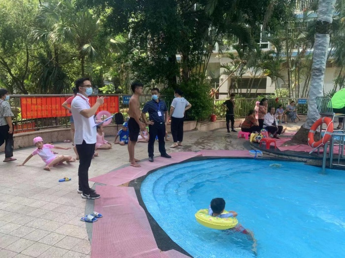 在李軍委員的部署下,當日下午,坦洲鎮宣傳辦(教體文旅局)聯合坦洲公安分局、綜治、水務等部門共派出9人組成兩個工作小組開展坦洲鎮重點場所(游泳池)及重點水域(河涌)防溺水專項整治行動。