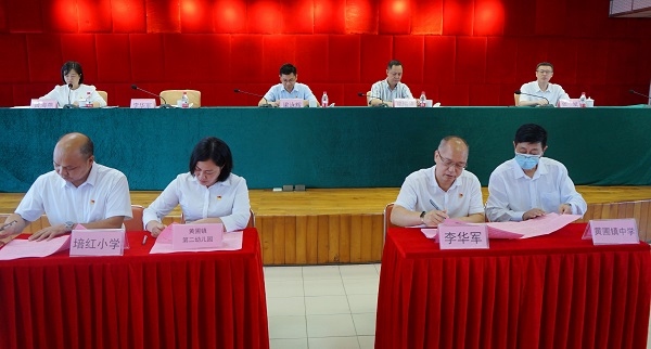 黃圃鎮黨委委員李華軍和新一屆中小學校長(園長)代表簽訂了廉政建設責任書。