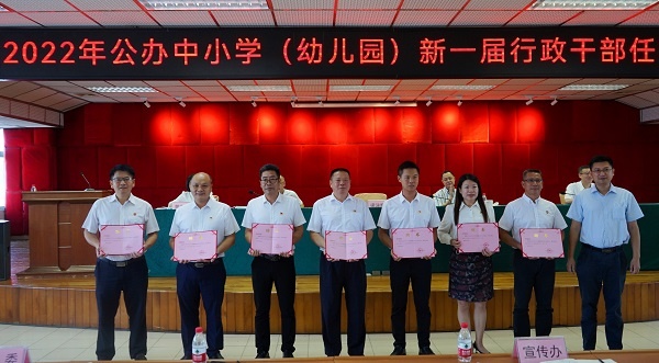 鎮黨委副書記、鎮長梁煊華宣讀新一屆公辦中小學(幼兒園)行政干部任職文件。