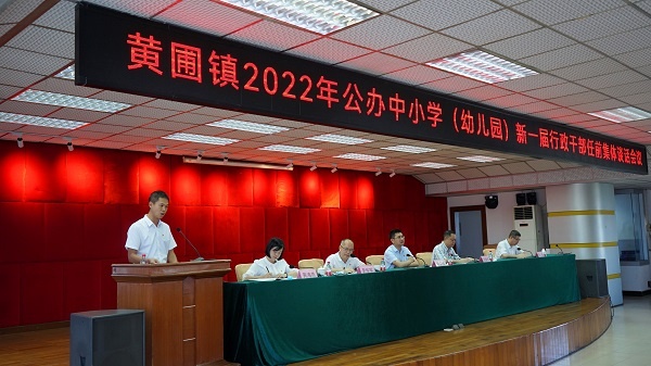 為加強教師干部隊伍建設,以教育高質量發展支撐經濟社會高質量發展,7月21日上午,黃圃鎮召開2022年公辦中小學(幼兒園)新一屆行政干部任前集體談話會議,要求堅定理想信念、樂于奉獻、發揚高尚師德、發揮卓越師能,成為深入教育教學改革、提高全鎮教育教學質量的中堅力量。