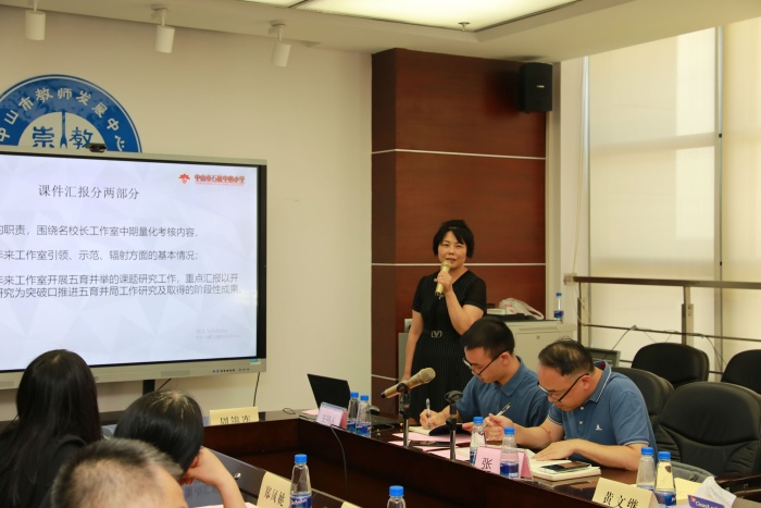 為了凸顯工作室工作的“研究性”,活動要求主持人匯報圍繞兩大方面內容進行,一是聚焦主持人的職責,簡述一年來工作室引領、示范、輻射方面的基本情況;二是聚焦工作室的研究性,簡述一年來工作室開展研究工作的情況,重點在第二部分內容。24位“三名”工作室主持人依次按照考核要求進行了現場匯報。工作室主持人緊緊圍繞主持人的職責和工作室的研究情況,用詳實的數據、豐富的圖片展示了工作室過去一年開展的各具特色的活動以及所取得的豐碩成果。