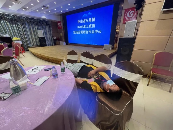 “沒關系,我還年輕,我能扛住”!光明小學彭仁琪老師笑著說。7月9日晚上10點接到緊急任務,在毫無準備的情況下,他義無反顧地前往轉運專班調度中心工作,在此期間,通知密接人員提前收拾生活用品以及協助醫護人員轉移密接者成為了他的工作。因任務繁忙,他連續熬了幾個晚上,通宵奮戰,打電話打累了,偶爾瞇會來緩解疲憊。但即使這樣,他也毫無怨言,拖著疲憊不堪的身軀,也無法阻擋他抗疫的步伐。